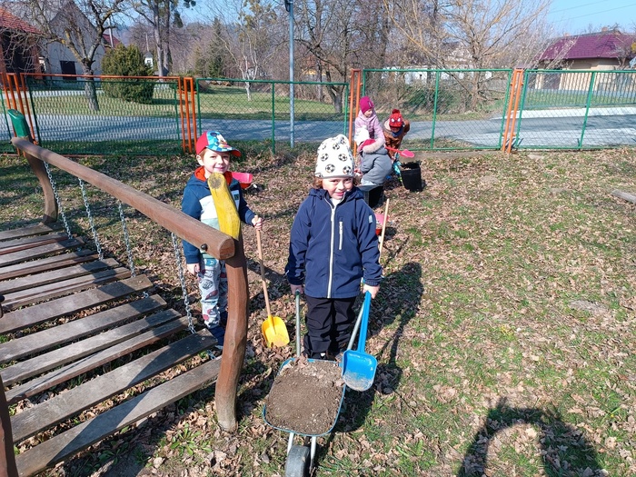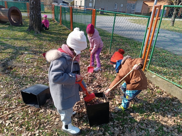 Úvod > Fotogalerie > Školní rok 2025/2026 > Malí zahradníci. Úprava záhonů na školní zahradě. Setí semínek pokud.
