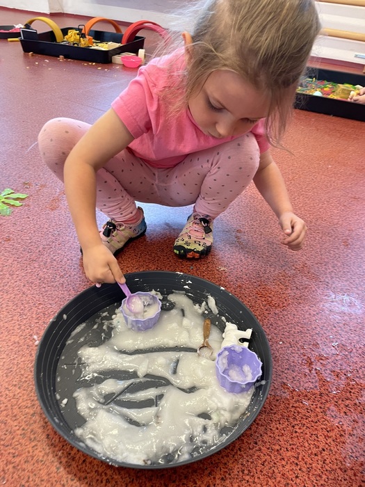 Za finanční podpory Spolku rodičů jsme se vydali na další výlet, tentokrát do Nového Jičína. Ve velkém městě jsme se neztratili a v RC Smíchule nás přivítali se smyslohraním Tůdle z nůdle… Všichni si dosyta užili hrátky s blátem, želatinou, slizem, vodou, magnetkami a spoustu dalších smyslových materiálů. Po lehké svačince jsme si vyhráli v herničce se skluzavkou a spoustou dřevěných hraček.